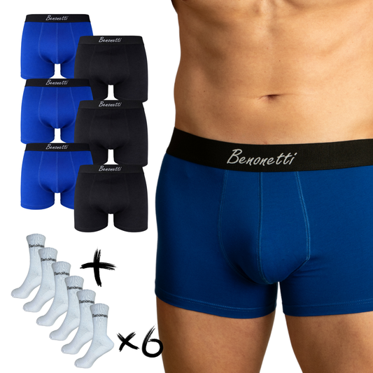 Benonetti Bundle Herren Boxershorts, Azurblau - Sneaker Socken - 6er Pack