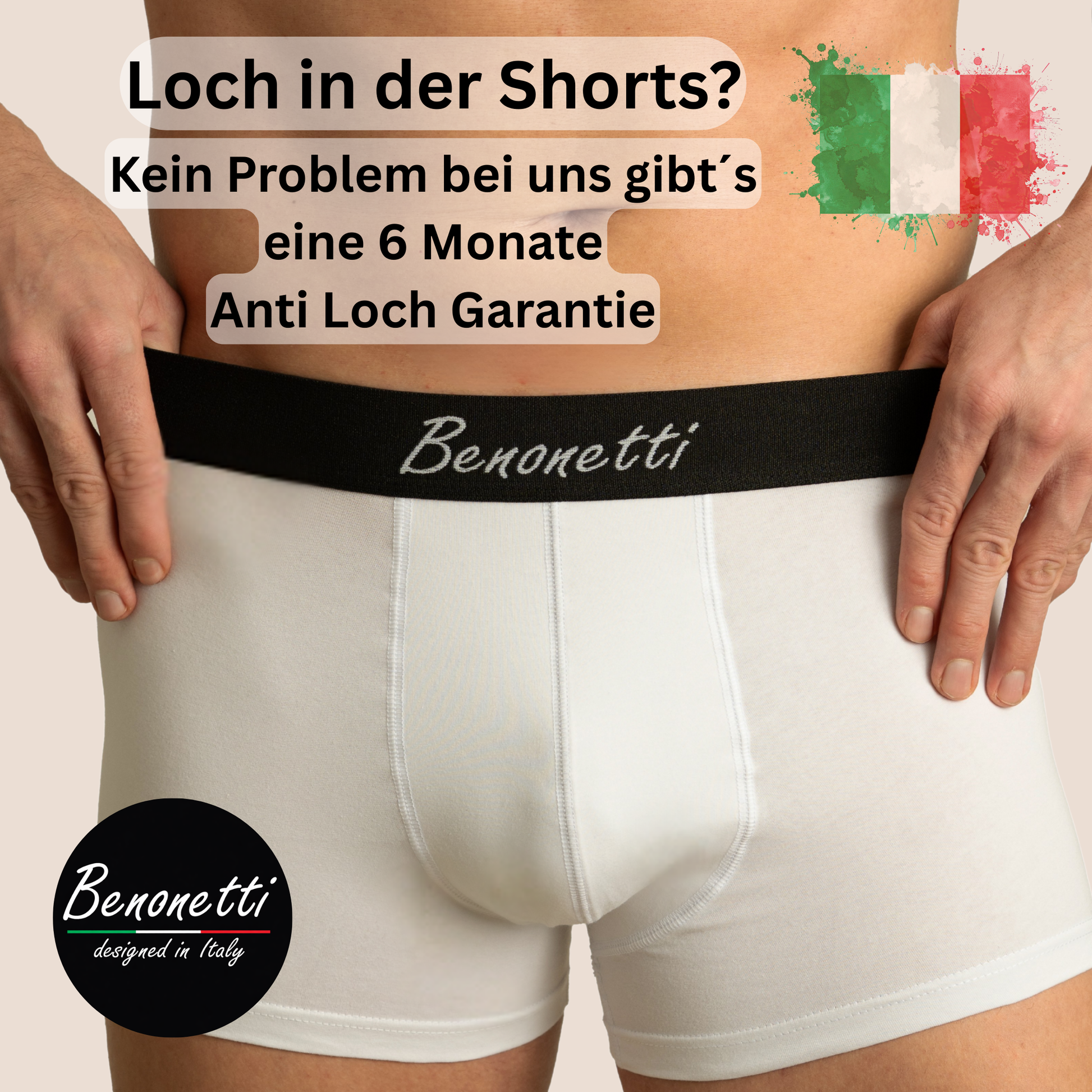 Benonetti steht für Premiumqualität und langlebige Produkte. Deshalb bieten wir auf unsere Boxershorts eine exklusive Anti-Loch Garantie. Sie ist ein klares Versprechen an dich: Diese Herrenunterwäsche ist für den täglichen Gebrauch gemacht und hält auch hoher Beanspruchung problemlos stand.