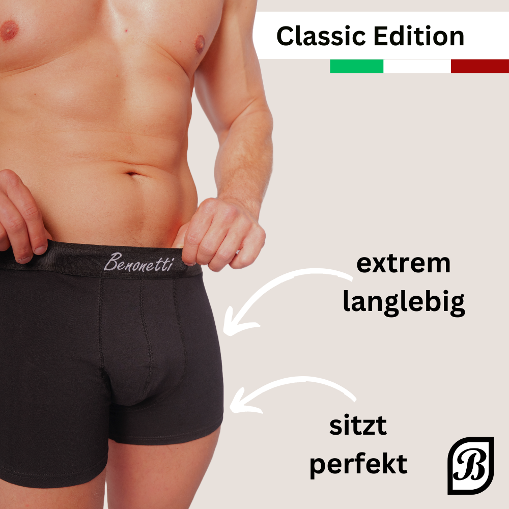 Italienisches Handwerk trifft auf modernen Komfort – Benonetti bietet dir Boxershorts, die durch Eleganz und Nachhaltigkeit überzeugen.