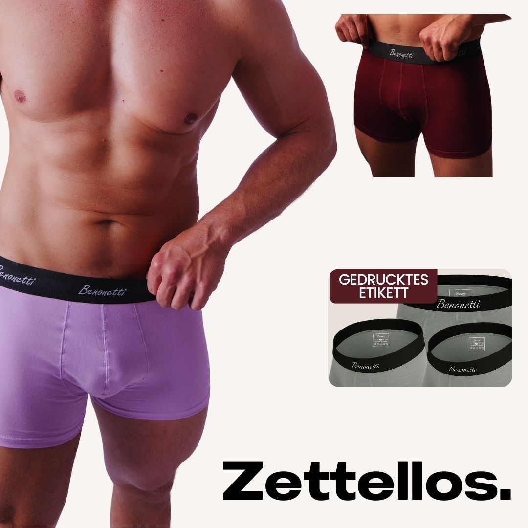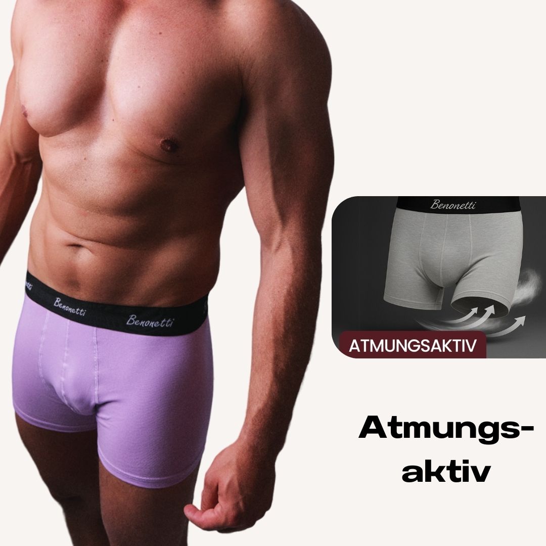 Das Material sollte atmungsaktiv, weich und hautfreundlich sein. Baumwolle, Mischgewebe oder Bambusfasern bieten häufig den besten Tragekomfort, da sie Feuchtigkeit gut absorbieren und die Haut atmen lassen. Die Benonetti Boxershorts besteht aus hochwertigem hautfreundlichem Baumwollstoff.