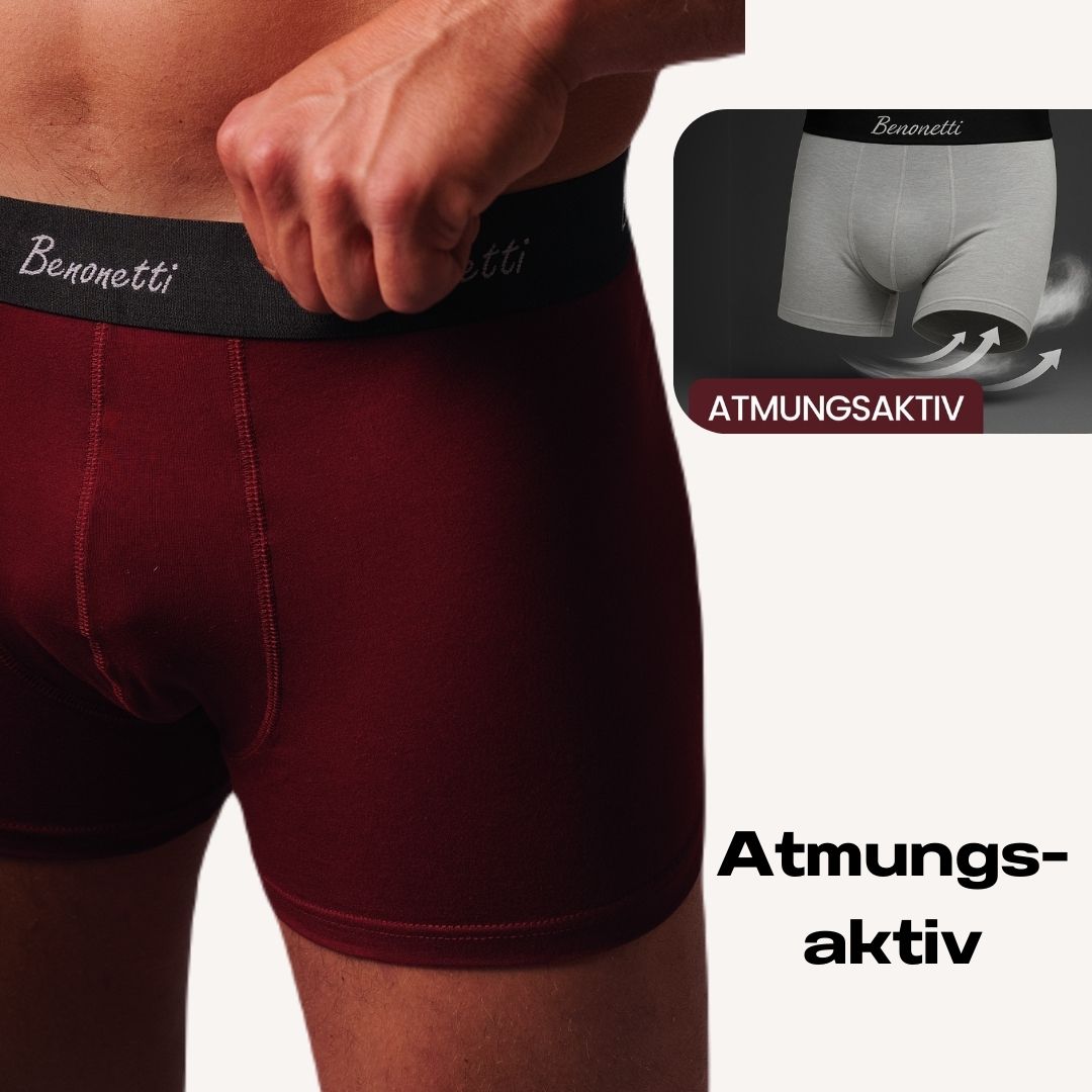 Das Material sollte atmungsaktiv, weich und hautfreundlich sein. Baumwolle, Mischgewebe oder Bambusfasern bieten häufig den besten Tragekomfort, da sie Feuchtigkeit gut absorbieren und die Haut atmen lassen. Die Benonetti Boxershorts besteht aus hochwertigem hautfreundlichem Baumwollstoff.